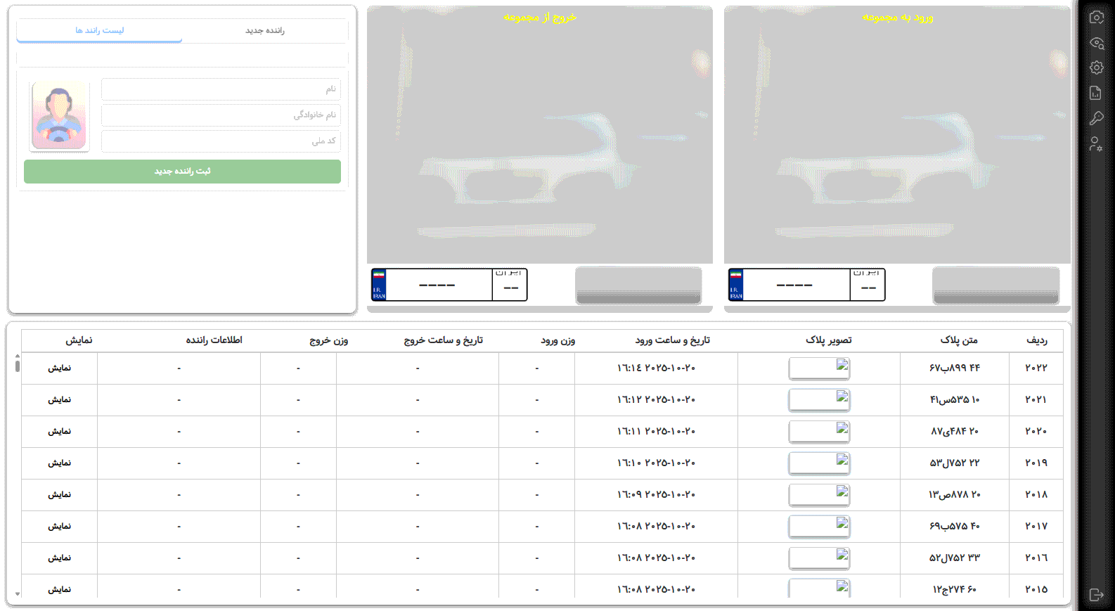 بله، تمامی اطلاعات ورود و خروج خودروها، همراه با تصاویر کامل و برش پلاک، در پایگاه داده ثبت میشود. مدیران میتوانند بر اساس بازه زمانی، راننده، پلاک یا مسیر، گزارشهای دقیق و تحلیلی استخراج کنند.