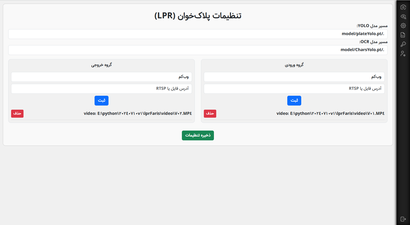 تعریف دوربینها، مسیرها، خودروها و پارامترهای OCR در محیطی یکپارچه. نگهداری ایمن دادههای تردد با قابلیت پشتیبانگیری و دسترسی سریع برای تحلیل.