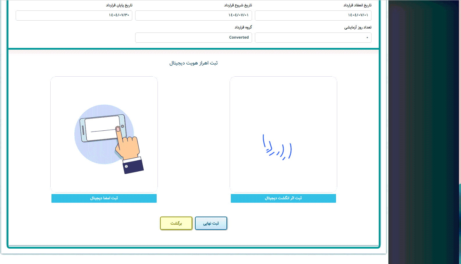 بله، سامانه از قابلیت صدور خودکار و گروهی قراردادها پشتیبانی میکند. مدیران میتوانند بر اساس نوع استخدام، پست سازمانی یا واحد کاری، قراردادهای متعددی را بهصورت همزمان ایجاد کرده و برای تأیید ارسال کنند.