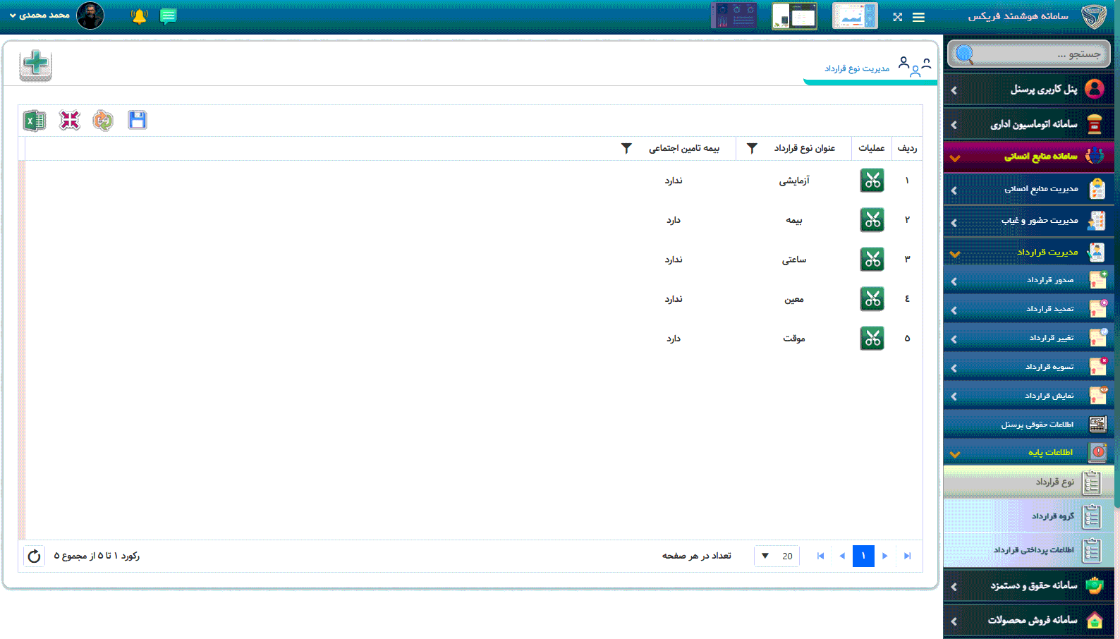 5. آیا امکان تعریف انواع قرارداد و الگوهای اختصاصی وجود دارد؟